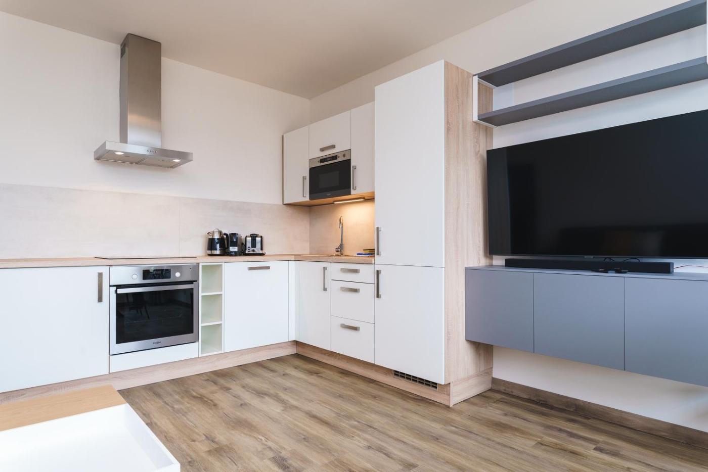 Two-Bedroom Apartment. This spacious apartment consists of 1 living room, 2 separate bedrooms and 1 bathroom with a shower. In the well-fitted kitchenette, guests will find a stovetop, a refrigerator, a dishwasher and kitchenware. Featuring a balcony with mountain views, this apartment also provides a tea and coffee maker and a flat-screen TV. The unit offers 3 beds.