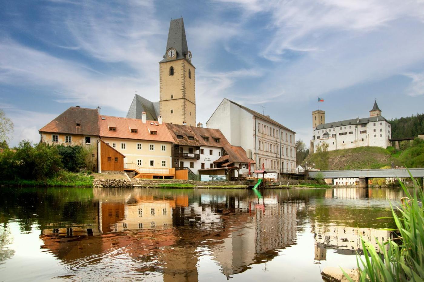 Set in Rožmberk nad Vltavou, the recently renovated Pension U Farní školy offers accommodation 25 km from Český Krumlov Castle and 15 km from Lipno Dam. The accommodation features a sauna and a hot tub. There is a sun terrace and guests can make use of free WiFi and free private parking.